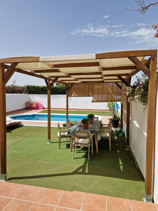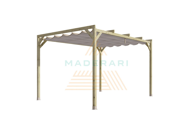 Pérgola de Madera Maciza 3×3 con Toldo Corredero