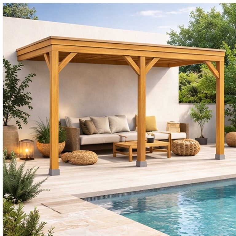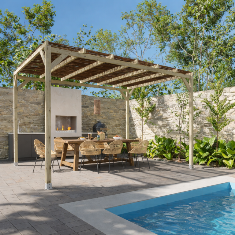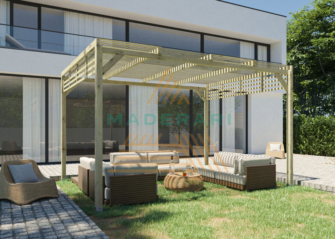 Pérgola de Madera Maciza 3×3 con Toldo Fijo